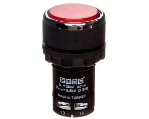 Przycisk sterowniczy serii MB – monoblok z tworzywa, kryty, niestabilny, wyposażony w styki 1NO. Kolor czerwony.