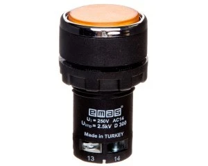 Przycisk sterowniczy serii MB – monoblok z tworzywa, kryty, niestabilny, wyposażony w styki 1NO. Kolor żółty.