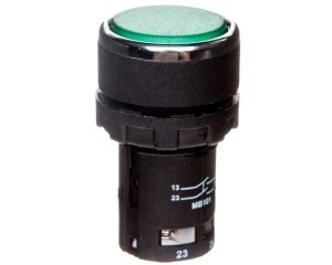 Przycisk sterowniczy serii MB – monoblok z tworzywa, kryty, niestabilny, wyposażony w styki 2NO. Kolor zielony.