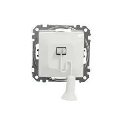 Przycisk z cięgnem, biały, to osprzęt serii Sedna Design & Elements marki Schneider Electric. Przycisk z cięgnem ma lśniące wykończenie powierzchni w kolorze białym i posiada następujące wymiary: szerokość 73 mm, wysokość 73 mm, głębokość 45 mm, głębokość wystawania 24 mm. Długość izolacji zdejmowanej z kabla to 13 mm. Przycisk charakteryzuje się stopniem ochrony IP20 i zakresem mocy wynoszącym 2300 W. Do produkcji przycisku wykorzystano tworzywo termoplastyczne o zwiększonej odporności na promieniowanie UV. Produkt jest montowany pod tynkowo i posiada zaciski bezśrubowe. Uwaga: produkty Sedna Design & Elements nie są kompatybilne z serią Sedna!