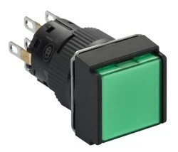 przycisk z podświetleniem ziel. Kwadr. O 16, kryty z sam. powr., 24 V, 2OC. rodzina produktów: Harmony XB6E - typ produktu: monolityczny przycisk podświetlany - opis skrócony: XB6E - średnica montażowa: 16 mm - typ styków i kompozycja: 2 Z/O - działanie styków: działanie migowe - rodzaj zacisków: fast connector socket, insulated faston: 2.8 x 0.5 mm, solder terminal, połączenie zaciskowe <= 0.75 mm2 / AWG 19 min - materiał styków: srebro pozłacane - źródło światła: dioda LED zintegrowana. Zalety: Rozwój z pełnym zaufaniem. Ta rodzina produktów, zaprojektowana dla przemysłu, łączy w sobie prostotę instalacji, elastyczność i wytrzymałą konstrukcję. Pomysłowy system blokowania składający się z główki i korpusu z zatrzaskami, zaciskanych za pomocą tylko jednej śruby, zapewnia prosty lecz bezpieczny montaż.... Zastosowanie: - Przemysł: producenci maszyn (motoryzacja, tekstylia, przemysł drzewny), producenci panelów sterowania, Sektor serwisowy i infrastruktura: producenci rozdzielnic energii elektrycznej, roboty publiczne, budownictwo, lotniska..