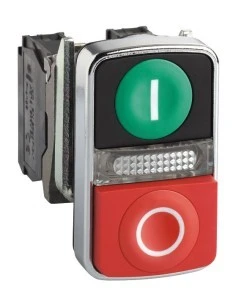 Przycisk ziel. kryty/czerw. wystający podśw. dwuklawiszowy O22 1NO+1NC 120V XB4BW73731G5