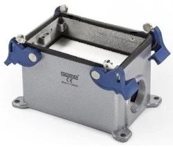 Obudowa metalowa złącz przemysłowych odlewana ciśnieniowo, z powierzchnią malowaną pokryciem elektrostatycznym.