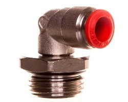 Przyłączka kątowa wtykowa mosiężna do przewodów sztucznych. Gwint: G1/2. Średnica przewodu: D8. Przyłączki do przewodów z tworzyw sztucznych wtykowe są stosowane do łączenia instalacji pneumatycznych oraz do podłączania elementów pneumatyki. Prosta konstrukcja i wysoka jakość wykonania oraz uszczelnienia gwarantują łatwe, szybkie i szczelne łączenie przewodów. Do przyłączek są stosowane przewody wykonane z następujących rodzajów tworzyw sztucznych: -poliamidu, -polietylenu, -PVC, -RILSANU, -poliuretanu. Zakres temperatur pracy: -18 do + 70°C. Maksymalne ciśnienie pracy: 1,5 MPa.