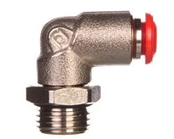 Przyłączka kątowa wtykowa mosiężna do przewodów sztucznych. Gwint: G1/4. Średnica przewodu: D6. Przyłączki do przewodów z tworzyw sztucznych wtykowe są stosowane do łączenia instalacji pneumatycznych oraz do podłączania elementów pneumatyki. Prosta konstrukcja i wysoka jakość wykonania oraz uszczelnienia gwarantują łatwe, szybkie i szczelne łączenie przewodów. Do przyłączek są stosowane przewody wykonane z następujących rodzajów tworzyw sztucznych: -poliamidu, -polietylenu, -PVC, -RILSANU, -poliuretanu. Zakres temperatur pracy: -18 do + 70°C. Maksymalne ciśnienie pracy: 1,5 MPa.