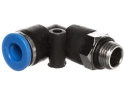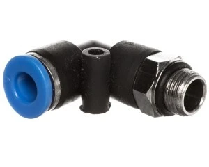 Przyłączka kątowa wtykowa tworzywowa do przewodów sztucznych. Gwint: G1/8. Średnica przewodu: D6. Przyłączki do przewodów z tworzyw sztucznych wtykowe są stosowane do łączenia instalacji pneumatycznych oraz do podłączania elementów pneumatyki. Prosta konstrukcja i wysoka jakość wykonania oraz uszczelnienia gwarantują łatwe, szybkie i szczelne łączenie przewodów. Do przyłączek są stosowane przewody wykonane z następujących rodzajów tworzyw sztucznych: -poliamidu, -polietylenu, -PVC, -RILSANU, -poliuretanu. Zakres temperatur pracy: -18 do + 70°C. Maksymalne ciśnienie pracy: 1,5 MPa.