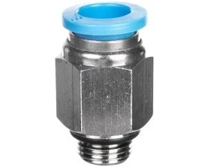 Przyłączka prosta wtykowa tworzywowa do przewodów sztucznych. Gwint: G1/8. Średnica przewodu: D8. Przyłączki do przewodów z tworzyw sztucznych wtykowe są stosowane do łączenia instalacji pneumatycznych oraz do podłączania elementów pneumatyki. Prosta konstrukcja i wysoka jakość wykonania oraz uszczelnienia gwarantują łatwe, szybkie i szczelne łączenie przewodów. Do przyłączek są stosowane przewody wykonane z następujących rodzajów tworzyw sztucznych: -poliamidu, -polietylenu, -PVC, -RILSANU, -poliuretanu. Zakres temperatur pracy: -18 do + 70°C. Maksymalne ciśnienie pracy: 1,5 MPa.