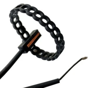 Przylgowy czujnik temperatury PTS-NTC10K składa się z końcówki pomiarowej z uchwytem montażowym umieszczonym na przewodzie o określonej długości.