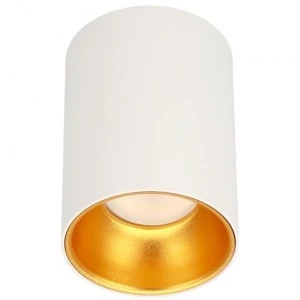 Punktowa oprawa sufitowa ZAMA White Gold wyróżnia się białą obudową zestawioną z eleganckim, złotym wnętrzem.