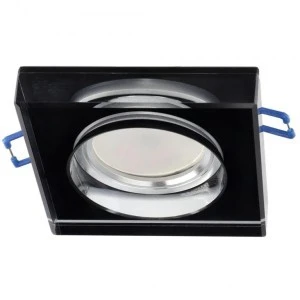Szklana, kwadratowa oprawa sufitowa wpuszczana, wykonana z grubego, hartowanego szkła w kolorze czarnym z połyskiem. Jej elegancki design i ścięte krawędzie dodają wnętrzom subtelności i nowoczesnego charakteru