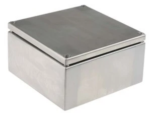 Zamknięte skrzynki terminal RS PRO IP66. Przedstawiamy gamę RS PRO o dużych obciążeniach terminal. Skrzynki te są przeznaczone do montażu zacisków szyny DIN i akcesoriów. Obudowa wykonana z naturalnej stali nierdzewnej 1,2 mm AISI 304 oraz czarna uszczelka neoprenowa zapewniają stopień ochrony IP66. Dlaczego to najlepszy zakup? Skrzynki terminal RS PRO są produkowane w bardzo wysokim standardzie, stosowane w szerokiej gamie zastosowań i są niezbędne do połączeń elektrycznych i elektromechanicznych. Charakterystyka i zalety. Materiał 304 / 1.4301 stal nierdzewna ocena IP66 Wlejki z czarną uszczelką neoprenową i 4 śrubami mocującymi M6 Temperatura robocza -20°C do +110°C. Punkty mocowania na szynie DIN, M5 Zewnętrzny sworzeń masowy M6. Typowe zastosowanie Skrzynki zaciskowe są głównie stosowane w konstrukcjach budowlanych i są przeznaczone do ochrony łatwo dostępnych przewodów i połączeń elektrycznych. Skrzynki są zwykle wykonane z metalu lub wytrzymałego plastiku i w większości przypadków można jest stosować wewnątrz pomieszczeń i na zewnątrz, ponieważ są odporne na wodę i uderzenia. Zwykle skrzynki połączeniowe są stosowane do: Podłączania dodatkowych gniazd do obwodów Dodawania punktów oświetleniowych Przedłużania obwodów Napraw obwodów elektrycznych Zatwierdzenia i certyfikacja ocena IP66 Często zadawane pytania Czy to opakowanie jest dostarczane z terminal? Nie, z tą skrzynką połączeniową nie są dostarczane żadne zaciski Czy ta obudowa posiada wyłamania, a jeśli tak, to jaka jest jego wielkość? Nie, ta puszka połączeniowa nie zawiera otworów do wyłamania
