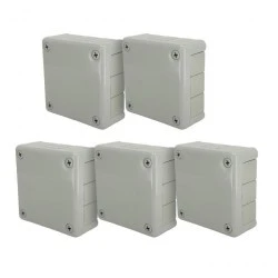 5x Puszka hermetyczna natynkowa, 12-wlotowa, z dławikami gumowymi, zamknięcie "na WKRĘTY", 118x118x46mm