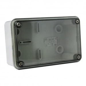 Puszka heremtyczna natynkowa z transparentną pokrywą 120 x 75 x 50 mm 007.PK Marlanvil zastosowanie do pomieszczeń i osłoniętych instalacji zewnętrznych sposób montażu ścienny/sufitowy kolor podstawy szary kolor pokrywy przyciemniany transparentny materiał PVC sposób mocowania pokrywy wkręty ze stali nierdzewnej wymiary [Puszka natynkowa 243x190x110 12membran I] wewnętrzne: A: 120mm B: 75mm C: 50mm zewnętrzne: A: 130mm B: 82mm C: 54mm stopień ochrony IP66 odporne na działanie chemikaliów i osadów tak wysoki stopień ochrony przed uderzeniami mechanicznymi tak bezhalogenowy tak certyfikat CE producent Marlanvil indeks 007.PK EAN 8017521114644
