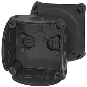 Puszka instalacyjna natynkowa HENSEL o wymiarach 84x84x55 mm to hermetyczna obudowa, zapewniająca wysoki stopień ochrony IP66, co gwarantuje jej odporność na pył i wodę, idealną do wymagających warunków instalacyjnych.