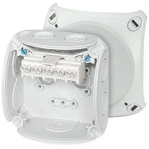 Puszka instalacyjna natynkowa HENSEL o wymiarach 93x93x62 mm to hermetyczna obudowa, zapewniająca wysoki stopień ochrony IP66, co gwarantuje jej odporność na pył i wodę, idealną do wymagających warunków instalacyjnych.