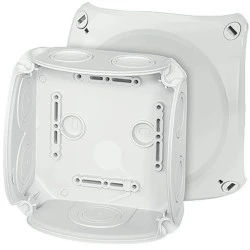 Puszka instalacyjna natynkowa HENSEL o wymiarach 130x130x77 mm to hermetyczna obudowa, zapewniająca wysoki stopień ochrony IP66, co gwarantuje jej odporność na pył i wodę, idealną do wymagających warunków instalacyjnych.