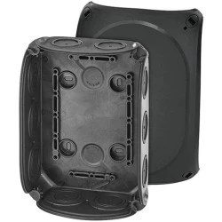 Puszka instalacyjna natynkowa HENSEL o wymiarach 180x130x77 mm to hermetyczna obudowa, zapewniająca wysoki stopień ochrony IP66, co gwarantuje jej odporność na pył i wodę, idealną do wymagających warunków instalacyjnych.