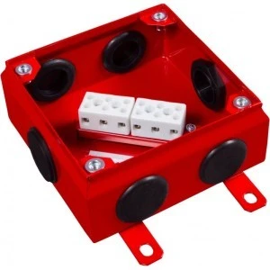 Puszka przelotowo-rozgałęźna wyposażona w 6 zacisków zapewniających montaż żył o przekroju od 1,5 do 16mm2. W standardzie wyposażona w 4 dwukomponentowe dławiki metryczne i 2 zaślepki.