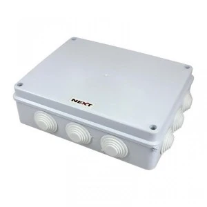 Puszka natynkowa hermetyczna IP65 300x250x120 biała NPH300 3220208 Harry, firmy Next Electro. Prostokątna, szczelna puszka n/t o wysokim stopniu szczelności IP65. Model wyposażony w 12 dławic.