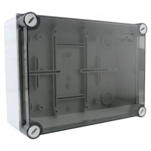 Puszka 190x140x75 natynkowa 009.A.PK Marlanvil ⭐⭐⭐⭐⭐ ✔️Puszka hermetyczna natynkowa o wymiarach wewnętrznych 190x140x75 mm oraz wymiarach zewnętrznych 195x145x80 mm. Puszka posiada przyciemnianą, transparentną pokrywę i podstawę w kolorze szarym. Produkt charakteryzuje się wysokim stopniem ochrony przed uderzeniami mechanicznymi, posiada stopień ochrony IP66. Puszkę stosuje się do pomieszczeń i osłoniętych instalacji zewnętrznych. zastosowanie do pomieszczeń i osłoniętych instalacji zewnętrznych sposób montażu ścienny/sufitowy kolor podstawy szary RAL 7035 kolor pokrywy przyciemniany transparentny materiał PVC sposób mocowania pokrywy zawiasowe, szare wkręty z nylonu wymiary [Puszka natynkowa 243x190x110 12membran I] wewnętrzne: A: 190mm B: 140mm C: 75mm zewnętrzne: A: 195mm B: 145mm C: 80mm wysokość podstawy: 55mm wysokość pokrywy: 20mm stopień ochrony IP66 samogasnąca do 650°C tak odporne na działanie chemikaliów i osadów tak wysoki stopień ochrony przed uderzeniami mechanicznymi tak bezhalogenowy tak certyfikat CE producent Marlanvil indeks 009.A.PK EAN 8017521111049