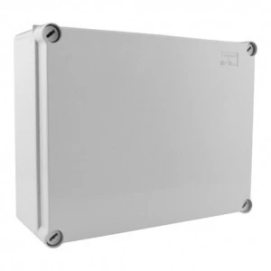 Puszka natynkowa 240x190x90 IP66 hermetyczna 010.A.PL.V0 M-L 2244 ⭐⭐⭐⭐⭐ ✔️Puszka hermetyczna natynkowa o wymiarach wewnętrznych 245x195x95 mm oraz wymiarach zewnętrznych 240x190x90 mm. Puszka posiada przyciemnianą, transparentną pokrywę i podstawę w kolorze szarym. Produkt charakteryzuje się wysokim stopniem ochrony przed uderzeniami mechanicznymi, posiada stopień ochrony IP66. Puszkę stosuje się do pomieszczeń i osłoniętych instalacji zewnętrznych. zastosowanie do pomieszczeń i osłoniętych instalacji zewnętrznych sposób montażu ścienny/sufitowy kolor podstawy szary RAL 7035 kolor pokrywy szary RAL 7035 materiał PVC sposób mocowania szare wkręty z nylonu wymiary [Puszka natynkowa 243x190x110 12membran I] wewnętrzne: A: 240mm B: 190mm C: 90mm zewnętrzne: A: 245mm B: 195mm C: 95mm wysokość podstawy: 68 mm wysokość pokrywy: 24 mm stopień ochrony IP66 samogasnąca do 960°C tak odporne na działanie chemikaliów i osadów tak wysoki stopień ochrony przed uderzeniami mechanicznymi tak bezhalogenowy tak certyfikat CE producent Marlanvil indeks 010.A.PL.V0 EAN 8017521112244
