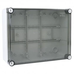 Puszka hermetyczna natynkowa zewnętrzna odgałęźna 240x190x90 mm bez osłabień 010.A.PK.VO Marlanvil ⭐⭐⭐⭐⭐ ✔️Puszki odgałęźne cechują się wysokim stopniem szczelności - IP66. Bezhalogenowy materiał zmniejsza ryzyko emisji szkodliwych substancji w przypadku pożaru. Puszki instalacyjne 010.A.PK.V0 dedykowane są do montażu natynkowego. Wymiary zewnętrzne z pokrywą wynoszą 245x195x95mm, natomiast wymiary wewnętrzne puszki wynoszą 240x190x90 mm. zastosowanie do pomieszczeń i osłoniętych instalacji zewnętrznych sposób montażu ścienny/sufitowy kolor podstawy szary RAL 7035 kolor pokrywy przyciemniany transparentny materiał PVC sposób mocowania szare wkręty z nylonu wymiary [Puszka natynkowa 243x190x110 12membran I] wewnętrzne: A: 240mm B: 190mm C: 90mm zewnętrzne: A: 245mm B: 195mm C: 95mm wysokość podstawy: 68 mm wysokość pokrywy: 24 mm stopień ochrony IP66 samogasnąca do 960°C tak odporne na działanie chemikaliów i osadów tak wysoki stopień ochrony przed uderzeniami mechanicznymi tak bezhalogenowy tak certyfikat CE producent Marlanvil indeks 010.A.PK.VO EAN 8017521100005
