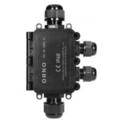 Obudowa w kolorze czarnym (RAL 9005) posiada dwie dławnice kablowe z gwintem i uszczelką M20 (2x 7-12 mm), które umożliwiają przeprowadzenie przewodu o średnicy 7 - 12 mm, a także dwie dławnice M16 (1x 5-10 mm).