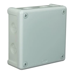 Puszka natynkowa hermetyczna, pusta, o wymiarach 118×118×46 mm i stopniu ochrony IP55, przeznaczona do instalacji elektrycznych wymagających uszczelnionych punktów przyłączeniowych. Produkt stosowany do prowadzenia przewodów oraz montażu elementów instalacyjnych w aplikacjach wewnętrznych i zewnętrznych pod zadaszeniem.