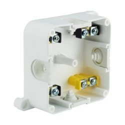 Puszka natynkowa hermetyczna przeznaczona do łączenia i rozgałęziania przewodów w instalacjach elektrycznych; obudowa typu natynkowego do montażu łączników, gniazd i punktów przyłączeniowych. Przeznaczona do zastosowań wewnętrznych oraz zewnętrznych pod zadaszeniem, gdzie wymagany jest stopień ochrony IP44.