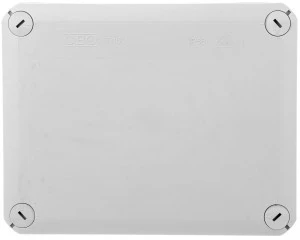 Puszka odgałęźna kablowa do łączenia kabli i przewodów w pomieszczeniach zamkniętych i chronionych obszarach zewnętrznych. Kształt kwadratowy z uszczelkami wtykowymi po bokach oraz z przetłoczeniami w dnie.