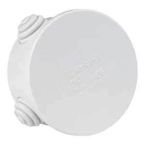 Puszka natynkowa IP44 Ø80x40mm ⭐⭐⭐⭐⭐ ✔️Puszki natynkowe doskonale sprawdzają się jako elementy prowadzenia przewodów w instalacjach ściennych i sufitowych. Produkty marki Marlanvil cechują się wysoką jakością oraz szczelnością dzięki stopniu ochrony IP44. Puszki posiadają cztery dławnice PE 25. Dodatkowym atutem jest brak szkodliwych halogenów, dzięki czemu puszka hermetyczna nie cechuje się wysoką szkodliwością w przypadku pożaru. Wymiary wewnętrzne wynoszą Ø80x40mm oraz wymiary zewnętrzne wynoszą Ø90x45 mm sposób montażu ścienny/sufitowy kolor szary RAL 7035 materiał PC/ABS stopień ochrony IP44 ilość membran w obudowie 4x PE 25 wymiary wewnętrzne wymiary zewnętrzne Ø80x40mm Ø90x45mm temperatura użytkowania od -15°C do 60°C odporny na działanie chemikaliów i osadów tak bezhalogenowy tak producent Marlanvil normy i certyfikaty CE indeks 002 EAN 8017521110035