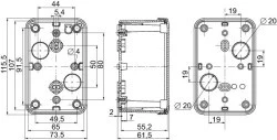 Puszka PC IP66 IK08 RAL7035 wewW105 S65 G55 zewW116 S74 G62 nieprzezr. pokr. W10. rodzina produktów: Thalassa TBP - aplikacja urządzenia: wielozadaniowy - wysokość: 116 mm - szerokość: 74 mm - głębokość: 62 mm - wysokość wewnętrzna: 105 mm - szerokość wewnętrzna: 65 mm - głębokość wewnętrzna: 55 mm - montaż obudowy: montowane na ścianie - składanie urządzenia: 1 x korpus, 1 x pokrywa, 4 x śruba pokrywy - liczba na zestaw: zestaw 5 szt. - typ korpusu: jednoczęściowa formowana - rodzaj osłony czołowej: niska pełna pokrywa - mocowanie pokrywy: śruby metalowe. Zalety: .. Zastosowanie: ..