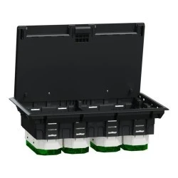 System Unica Schneider Electric+, podłogowa skrzynka wyjściowa INS52126 jest koloru szarego z 12 modułami.Dopasowana skrzynka montażowa może być wpuszczona w ścianę za pomocą typu podtynkowego. Wykonana z tworzywa sztucznego, ta podłogowa skrzynka wyjściowa jest dość niezawodna i odporna.Pokrywę należy szybko zamontować na obudowie. Może być wyposażony w materiał podłogowy o grubości do 6 mm. Ramy montażowe są zatrzaskiwane w obudowie.Wysokość ramy montażowej można regulować w trzech położeniach. To urządzenie jest kompatybilne z gniazdem Unica. Ma 224 mm szerokości, 70 mm wysokości, 345 mm głębokości.Jego tryb mocowania to zatrzaskiwany, przepust. Produkt jest sprzedawany w komplecie 1 sztuka. Stopień ochrony IP tego produktu to IP24.Nie zawiera rtęci ani metali ciężkich, dbając o środowisko i Twoje zdrowie.Unica System+ to gama innowacyjnych, stylowych rozwiązań do pracy, które są elastyczne i łatwe w instalacji.