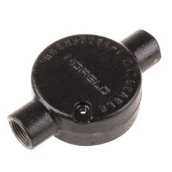 Stalowe okrągłe skrzynki. Gama puszek zawierająca dwa gwintowane otwory M4 (środek 50·8 mm) do mocowania pokrywy lid i jeden gwintowany otwór M4 w podstawie do śruby masowej. Odpowiednie śruby pokrywy lid. Patrz nr kat. 482-8644 i odpowiednie śruby uziemiające, patrz numer seryjny 482-8650.