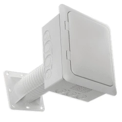 Dla instalacji przyrządów w ocieplanych fasadach budynków - o grubości 120 - 300 mm. Zastosowanie jako puszka rozdzielcza, do zacisku pomiarowego piorunochronu oraz innego zastosowania wg klienta. Eliminuje powstawanie mostków termicznych. Regulowana głębokość puszki. Zestaw zawiera puszkę, tubus nośny, izolację zewnętrzną (gumowa uszczelka) i wewnętrzną (styropian), opakowanie montażowe, płytę montażową otwierane wieko oraz śruby ze stali nierdzewnej. Wytrzymała konstrukcja. Trudnopalne i samogasnące tworzywo.