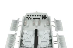 Każda puszka posiada zintegrowane miejsca dla elementów mocujących kabla. W skład zestawu wchodzą kaskadowo zamocowane tacki spawów do układania osłonek spawów.