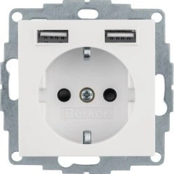Q.x Gniazdo SCHUKO z gniazdem ładowania USB 2,4 A samozaciski biały aksamit 48036089