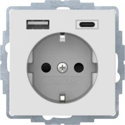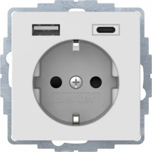 Q.x Gniazdo SCHUKO z gniazdem ładowania USB A+C 2.4/3.0 A samozaciski biały aksamit 48046089