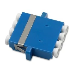 Adapter służący do połączenia światłowodów jednomodowych. Złącza: LC/UPC Typ: Quad Opis produktu Adapter światłowodowy służy do połączenia światłowodów jednomodowych zakończonych złączami LC/UPC. Może być stosowany w światłowodach, które mają dużą prędkość transmisji danych. Adapter jest częścią toru światłowodowego, gwarantuje stabilność parametrów transmisyjnych, a znakomitej jakości ferrula ceramiczna, oszlifowana pod kątem 8 stopni, zapewnia mniejsze tłumienie sygnału odbitego, co powoduje korzystniejsze parametry transmisyjne w całym połączeniu. Zatrzaskowe uchwyty zapewniają wygodny montaż i demontaż. Kabel typu Quad zastosowany w tym adapterze, używany jest w połączeniach sznurów pomiarowych, patchcordów transmisyjnych oraz jako element przełącznic światłowodowych. Schemat światłowodu jednomodowego Światłowód jednomodowy posiada małą średnicę rdzenia, a więc jest w stanie pomieścić tylko jeden mod światła. Sygnał porusza się w jednej wiązce z odbiciem światła bliskiemu zeru. Niski współczynnik odbicia oznacza mniejsze rozproszenie światła. Złącza LC/UPC Zaletą złączy LC są niewielkie wymiary, które umożliwiają gęste upakowanie, co sprawia, że idealnie nadają się do użytku w centralach oraz centrach przetwarzania danych. Posiadają one również system blokady zatrzaskowej, który zabezpiecza przed przypadkowym wyciągnięciem złącza. Złącza LC stosuje się również w sieciach LAN, WAN oraz FTTD, na kolei, w sieciach telekomunikacyjnych, w sieciach telewizji kablowych oraz w technice pomiarowej. Zaufanie potwierdzone gwarancją