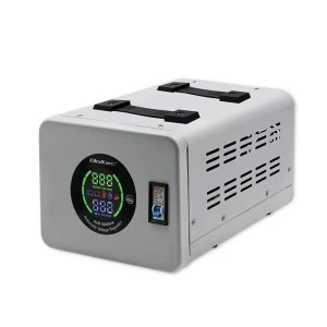 Nasz stabilizator został wyposażony w wygodny wyświetlacz LCD, który umożliwia łatwe monitorowanie i odczytywanie kluczowych parametrów pracy urządzenia. Zapewnia czytelną prezentację danych, takich jak aktualne napięcie wyjściowe, informacje o ewentualnych przepięciach, czas opóźnienia (jeśli jest aktywny), czy też inne istotne parametry pracy. To nie tylko ułatwia monitorowanie pracy urządzenia, ale także zapewnia użytkownikowi pewność, że wszystko działa prawidłowo i zgodnie z oczekiwaniami.