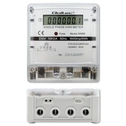 Licznik elektroniczny poboru prądu pozwala na bieżąco monitorować poziom zużycia energii elektrycznej przez odbiorniki jednofazowe zasilane prądem przemiennym 230V o częstotliwości 50Hz. Urządzenie posiada wskaźnik LED, który sygnalizuje o poborze energii, dioda miga z częstotliwością, która jest zależna od pobieranej energii ze stałą impulsowania 1600imp/kWh. Wyświetlacz LCD, wskazuje wartość pobranej energii przeliczonej na podstawie liczby impulsów. Dodatkowym atutem produktu jest bardzo łatwa obsługa i niewielki rozmiar, który z pewnością ułatwi instalację urządzenia.