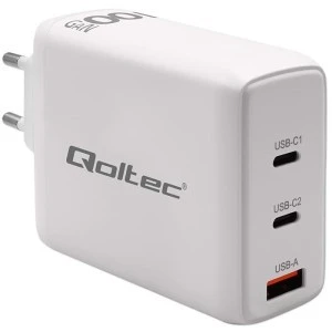 Ładowarka marki Qoltec została wyposażona w najnowocześniejszą technologię ładowania GaN polegającą na zastosowaniu nowego materiału półprzewodnikowego azotku galu. W zależności od rodzaju ładowanego urządzenia ładowarka dobiera odpowiednie napięcie i natężenie w zależności od parametrów baterii, chroniąc ją przed przegrzaniem.
