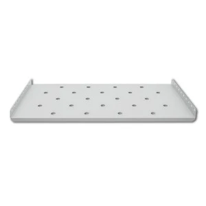 Półka do instalacji w szafie Rack'owej została wykonana z wysokiej jakości stali walcowanej na zimno. Dzięki temu, że blacha jest perforowana, zapewnia ona dostęp świeżego powietrza do urządzenia i pozwala na odprowadzanie tego nagrzanego, co zmniejsza ryzyko usterek i utraty wydajności systemu.