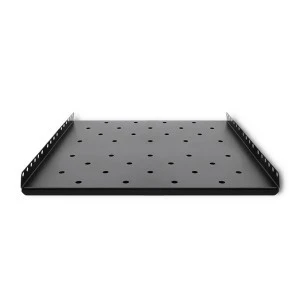 Półka do instalacji w szafie Rack'owej została wykonana z wysokiej jakości stali walcowanej na zimno. Dzięki temu, że blacha jest perforowana, zapewnia ona dostęp świeżego powietrza do urządzenia i pozwala na odprowadzanie tego nagrzanego, co zmniejsza ryzyko usterek i utraty wydajności systemu.