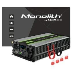 Przetwornica marki Qoltec to urządzenie, które zmienia napięcie stałe 24V na napięcie zmienne 230V. Idealnie sprawdzi się tam, gdzie brakuje bezpośredniego dostępu do sieci energetycznej . Produkt posiada wyświetlacz, 2 gniazda sieciowe kompatybilne z wtyczkami europejskimi oraz port USB QC 3.0.