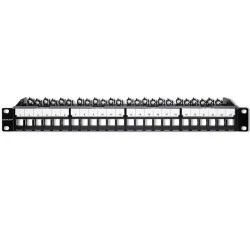 Atutem produktu jest wytrzymała konstrukcja, stylowy design i uniwersalny czarny kolor. Panel doskonale komponuje się w szafach rack 19 cali oraz w uchwytach o standardowej wysokości 1U. Organizowane kable mogą być ułożone w sposób, który jest spójny i symetryczny, co przyczynia się do estetyki całej szafy rack. 24 porty zostały podzielone na cztery 6-modułowe sekcje, co ułatwia zarządzanie połączeniami i identyfikację kabli. Numeracja portów i specjalne uchwyty z tyłu panelu sprawiają, że organizacja przewodów staje się łatwa i intuicyjna. Brak przypadkowego zamieszania kabli sprawia, że cała infrastruktura prezentuje się profesjonalnie.