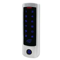 Prezentowany model składa się z podświetlanej cyfrowej klawiatury, dzwonka oraz czytnika kart zbliżeniowych i breloków.
