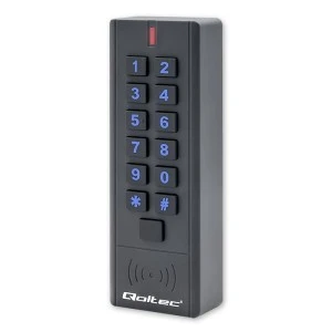 Prezentowany model składa się z podświetlanej cyfrowej klawiatury oraz czytnika kart zbliżeniowych i breloków.