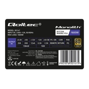 - moc 1600W: pozwalającą na zastosowanie zasilacza w koparkach kryptowalut lub wydajnych systemach komputerowych,