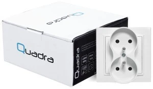 Nowoczesne włączniki światła, gniazda oraz ramki serii Quadra, do sterowania oświetleniem. W kolorze białym.